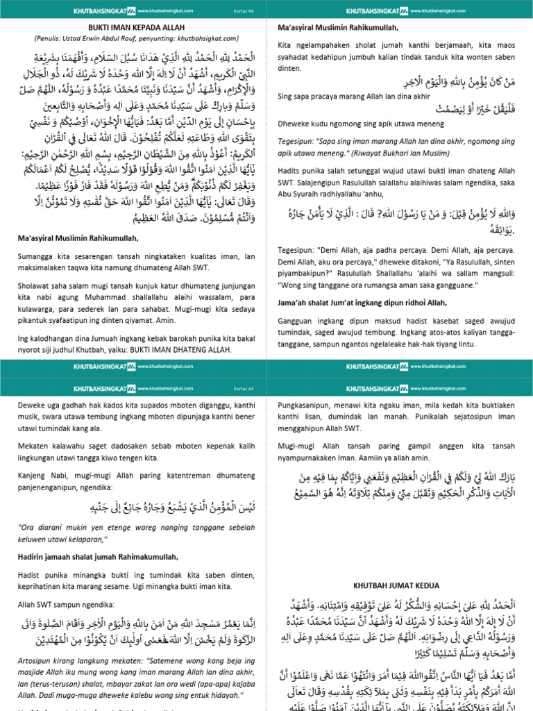 اَلْحَمْدُلِلّهِ حَمْدًاكَثِيْرًاكَمَااَمَرَ. وَاَشْهَدُاَنْ لاَاِلهَ اِلاَّللهُ وَحْدَه لاَشَرِيْكَ لَهُ. اِرْغَامًالِمَنْ جَحَدَبِهِ وَكَفَرَ. وَاَشْهَدُاَنَّ مُحَمَّدًا عَبْدُهُ وَرَسُوْلُهُ سَيِّدُاْلاِنْسِ وَالْبَشَرِ. اَللّهُمَّ صَلِّ وَسَلِّمْ عَلىَ مُحَمَّدٍ وَعَلىَ اَلِهِ وَصَحْبِهِ مَااتَّصَلَتْ عَيْنٌ بِنَظَرٍ وَاُذُنٌ بِخَبَرٍ